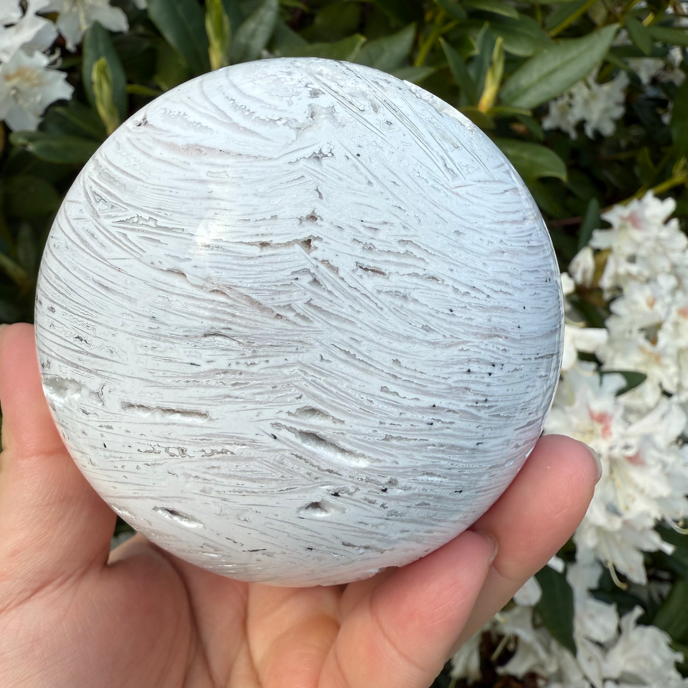 Snow White Druzy Agate Sphere – 72mm